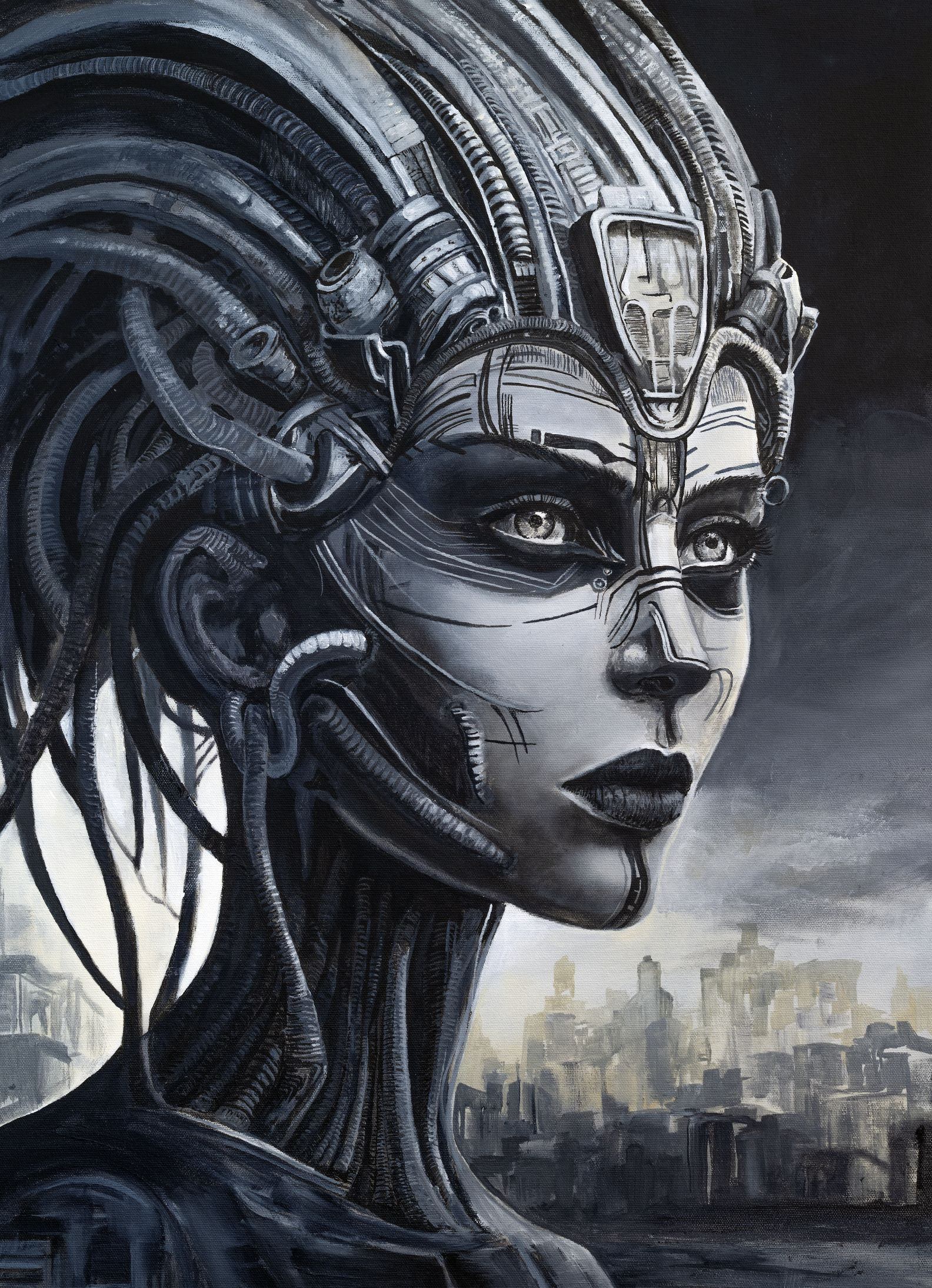 Serien Gudinnor består av nio akrylmålningar.